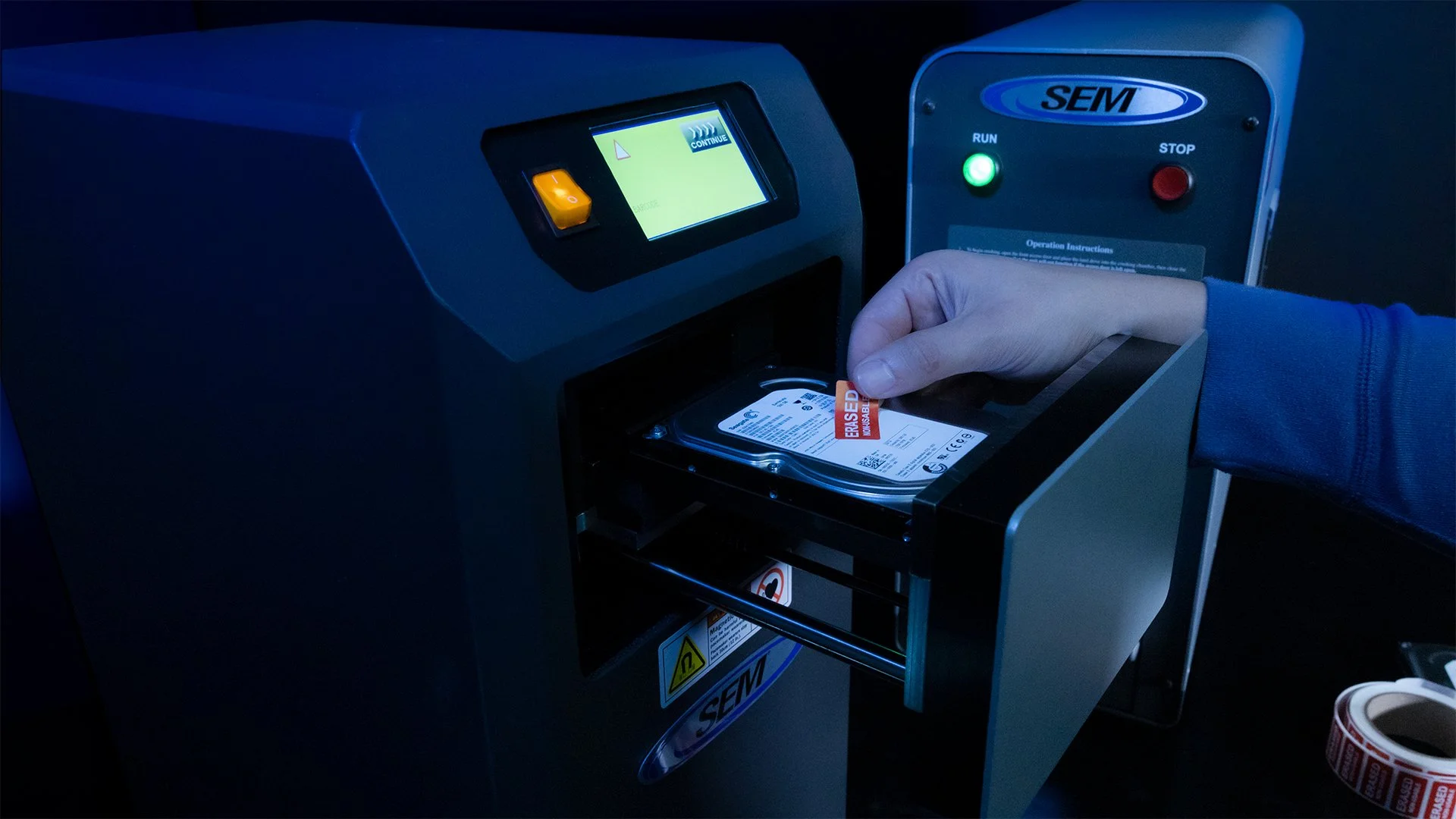 Degauss and destroy 100% of data from end of life hard drives and storage tapes in seconds.